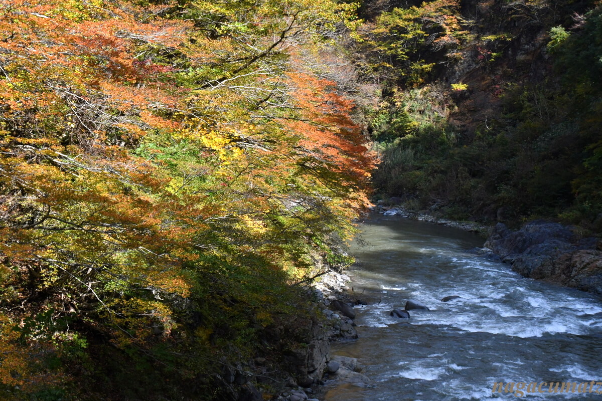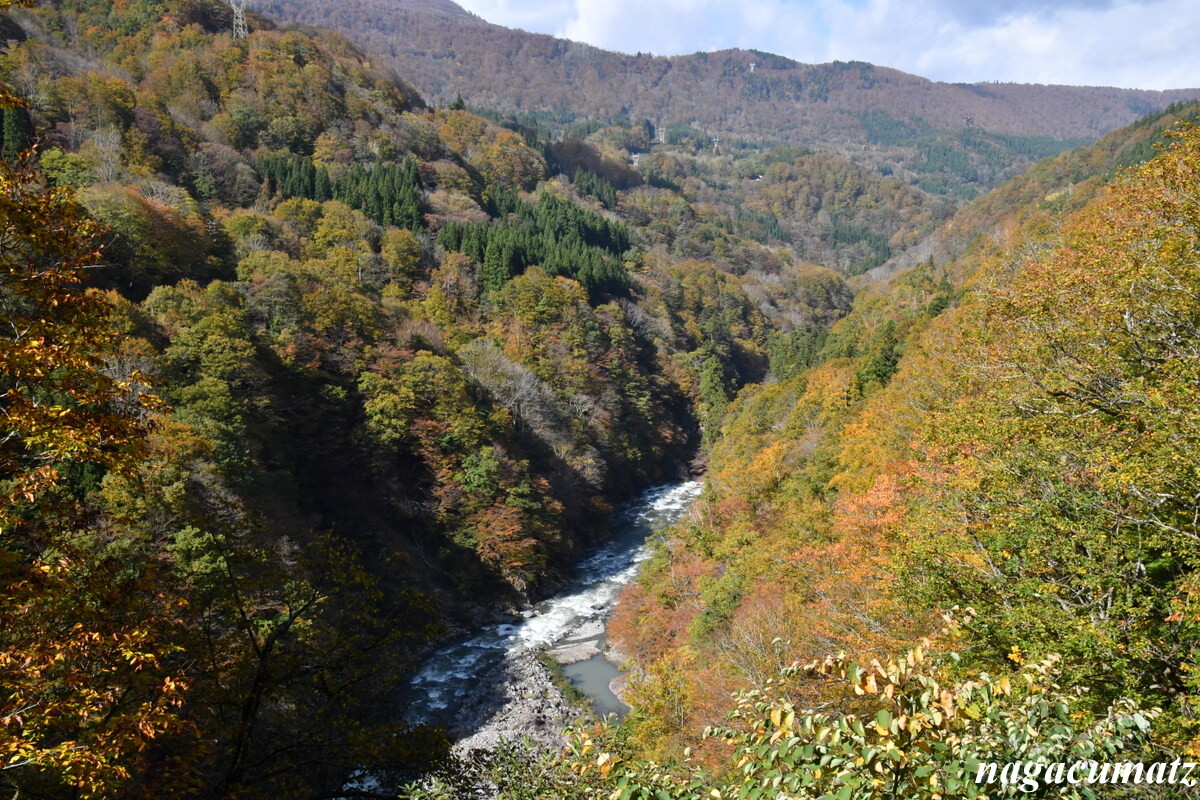 新潟県中魚沼郡津南町と長野県下水内郡栄村とにまたがる中津川沿いの地域で、新潟側から見る。