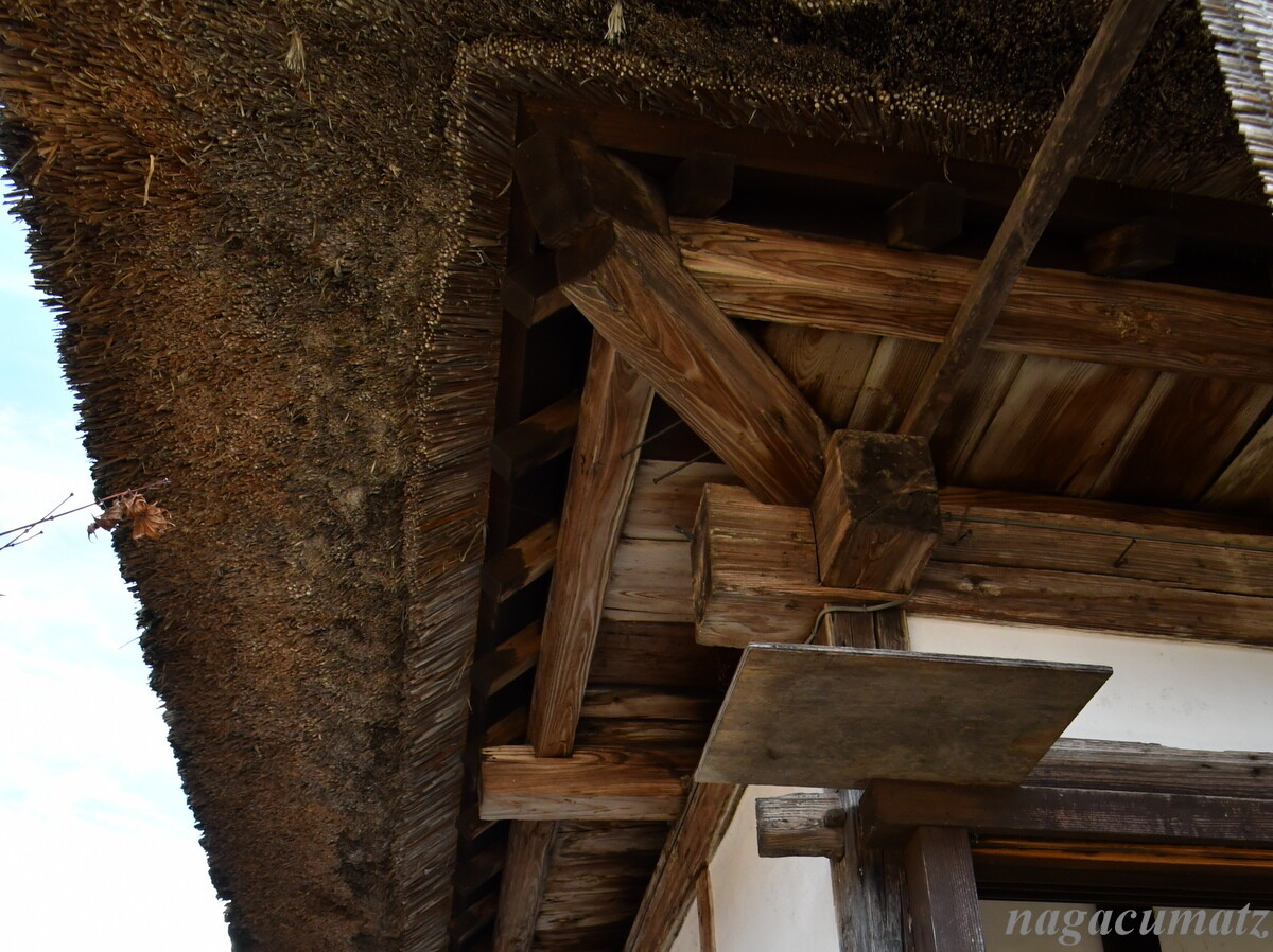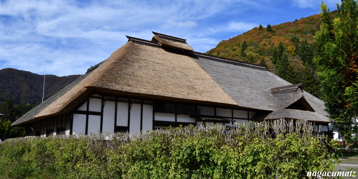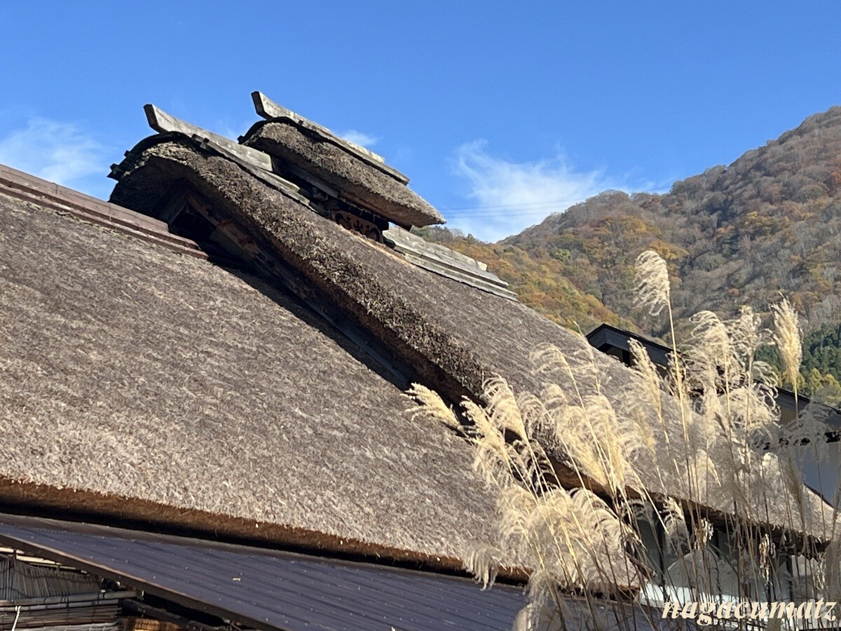 本陣の茅葺きも一部を新しくしたようで、色が異なっていた。