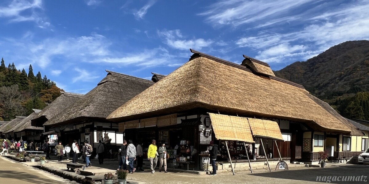 全長約450mの両側に、道に妻を向けた寄棟造の民家が建ち並ぶ、寛永20年(1643年)頃に開かれ会津西街道(別称:下野街道)の「半農半宿」の宿場。