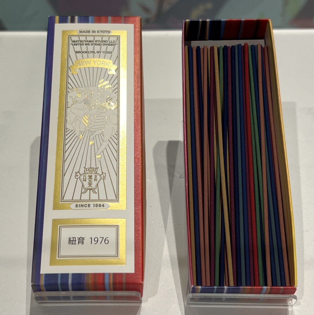 1594年京都に創業した香老舗 薫玉堂 松山氏が用いるドリッピング技法での箱。
