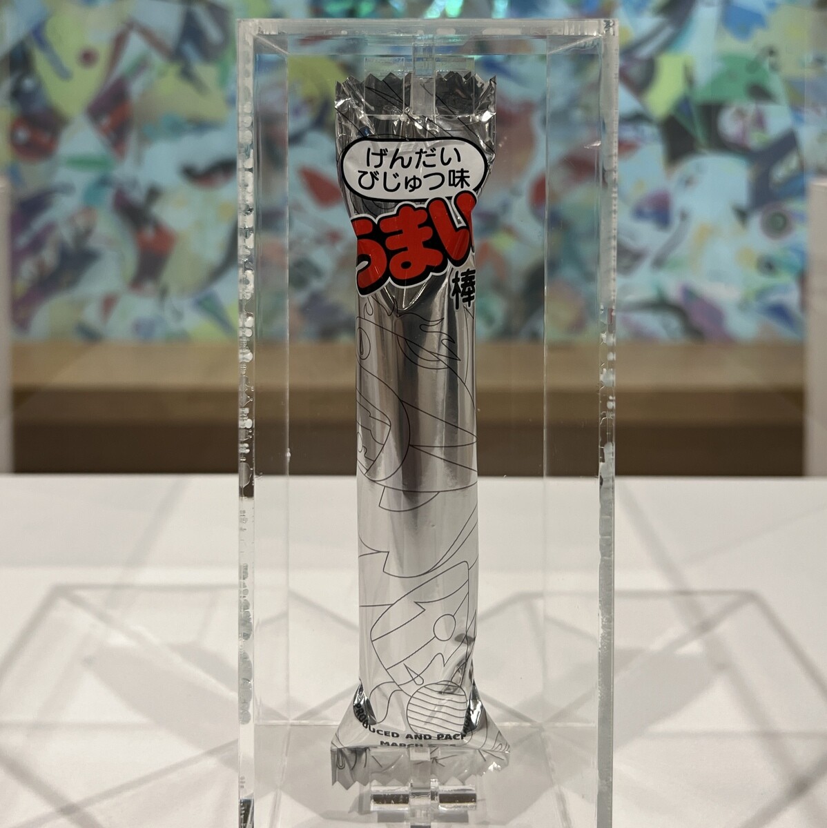 うまい棒 かつては10円、現在15円の駄菓子のうまい棒の《げんだいびじゅつ味》。10万円として売り出されたが、あっという間に売れたとのこと。