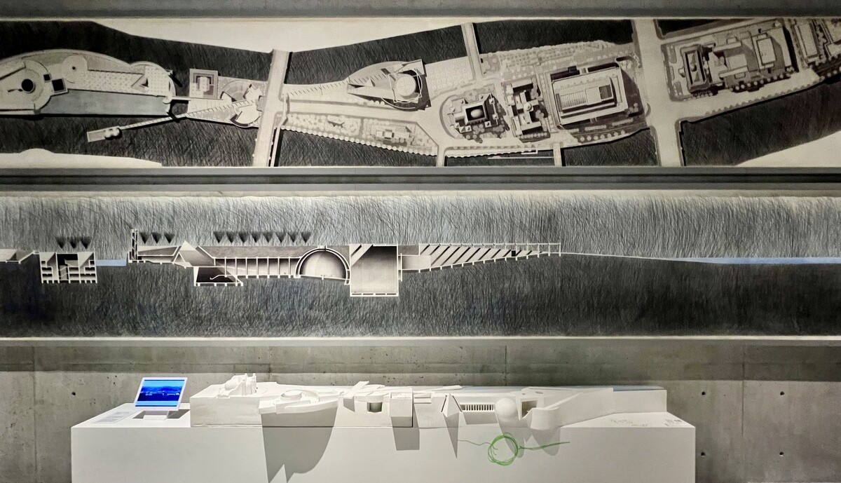 土砂採掘跡地だった所に、緑化からスタートし、全長800メートルの複雑な建築複合体が庭園のイメージで造られている。