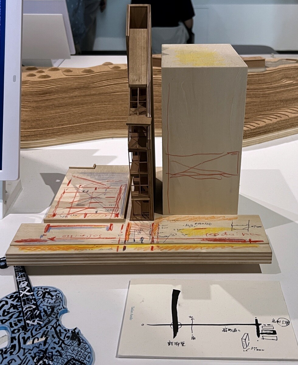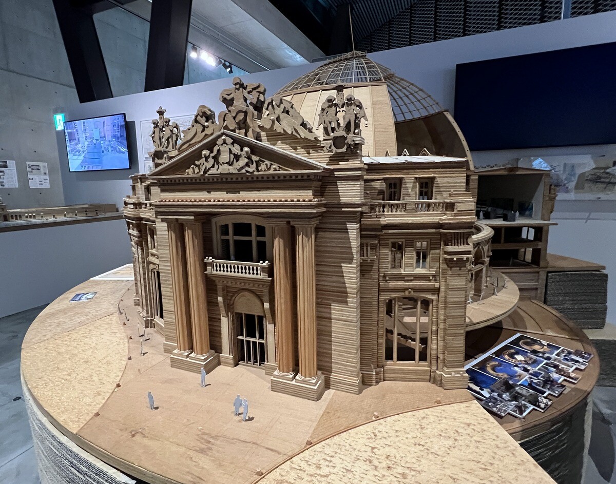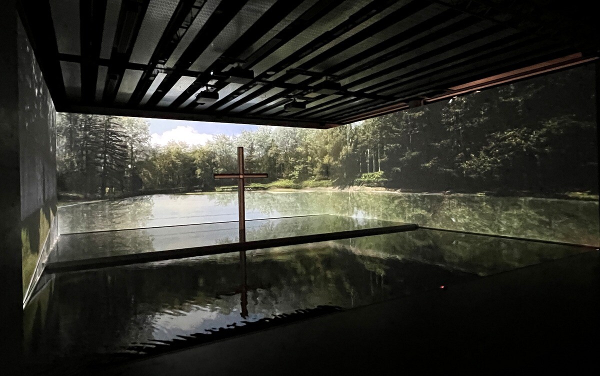 天井高15メートルの立体映像空間では、安藤建築を象徴する3つの作品「光の教会」「真駒内滝野霊園頭大仏殿」「ブルス・ドゥ・コメルス」を3面スクリーンで上映されている。