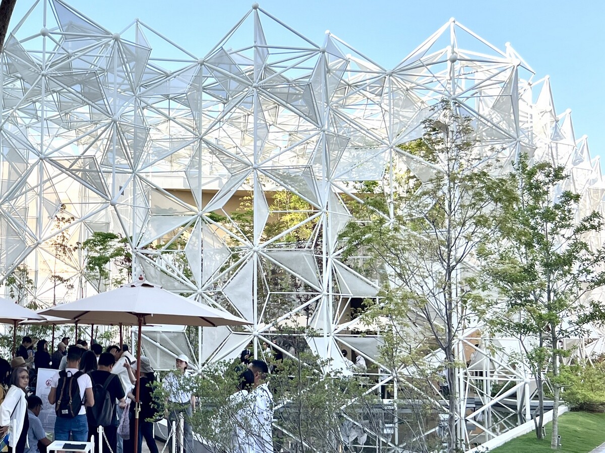 2020年に開催されたドバイ万博の日本館で使われた部材をリユースした組子ファサードとなっている。残念ながら予約が取れずに外観のみ💧
