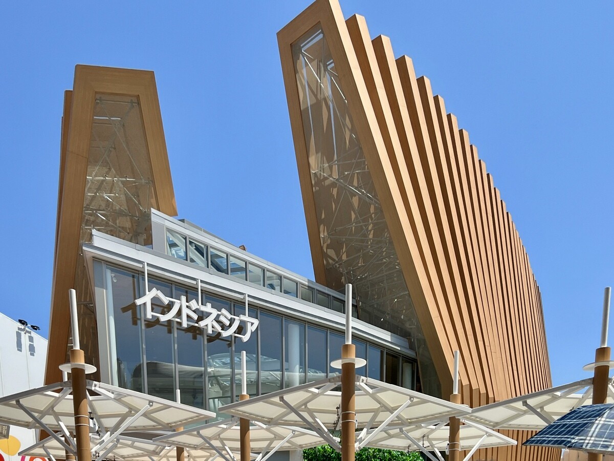 インドネシア政府設計。船をモチーフにしたパビリオン。