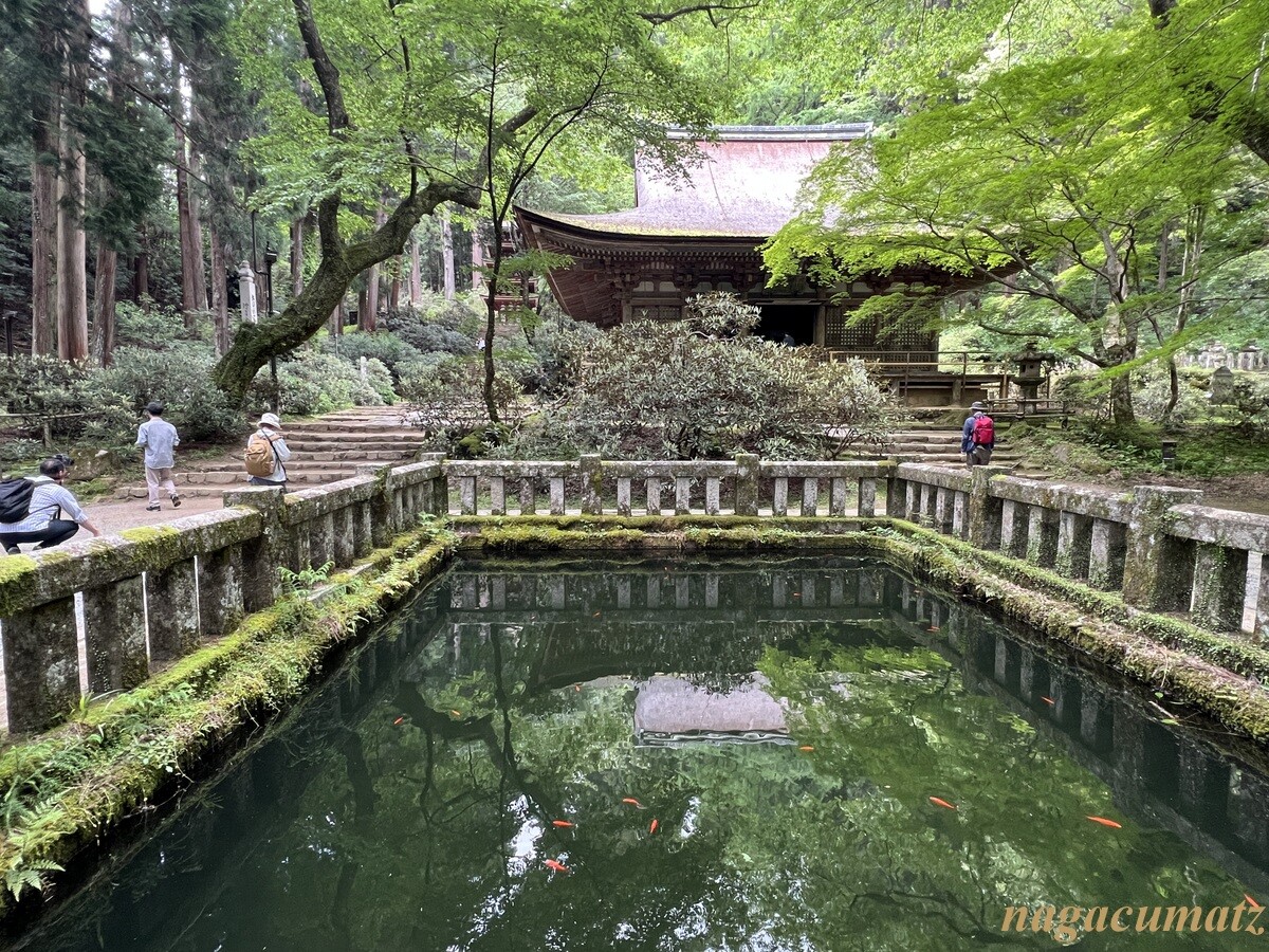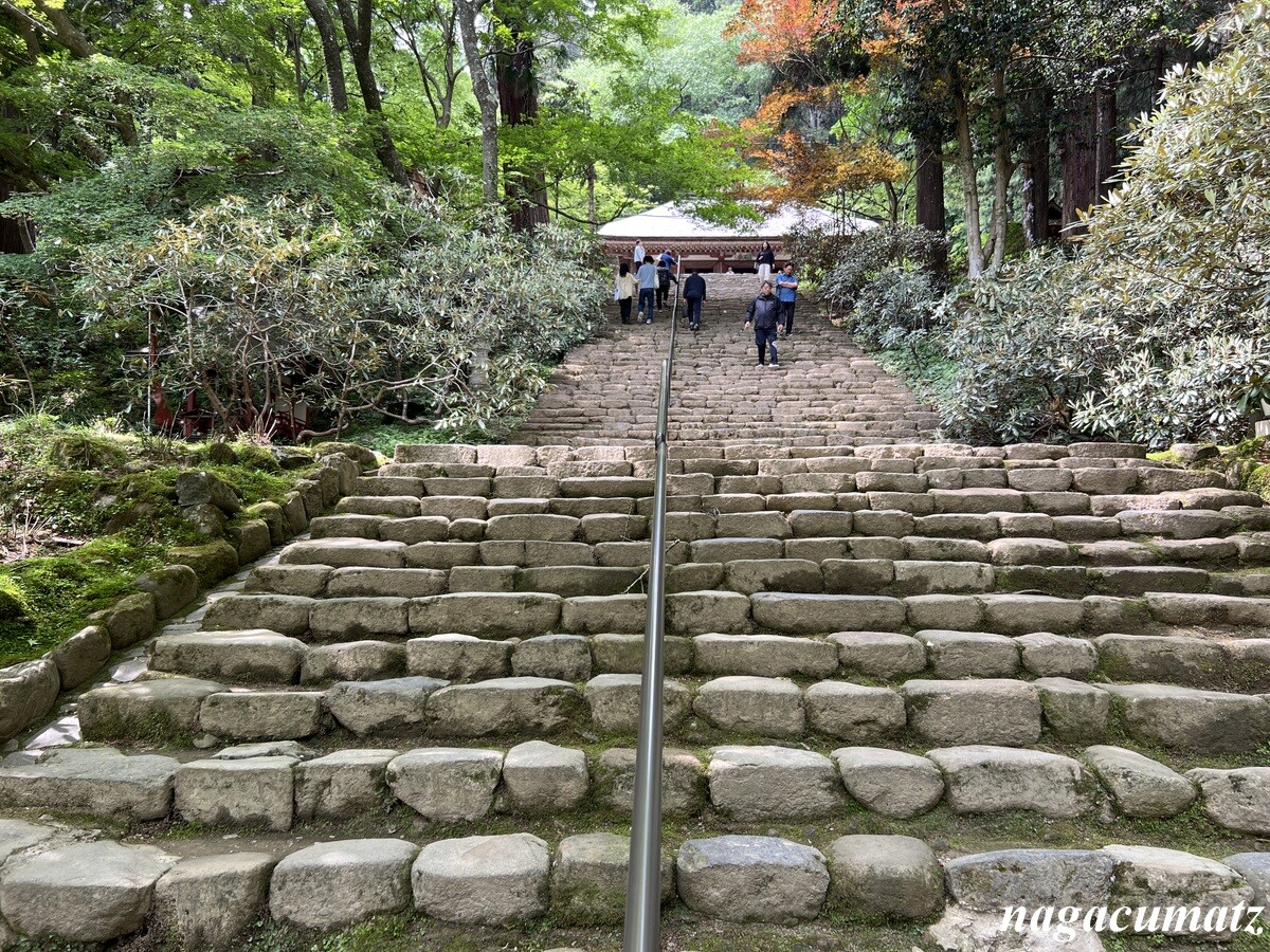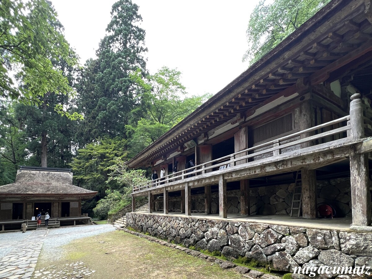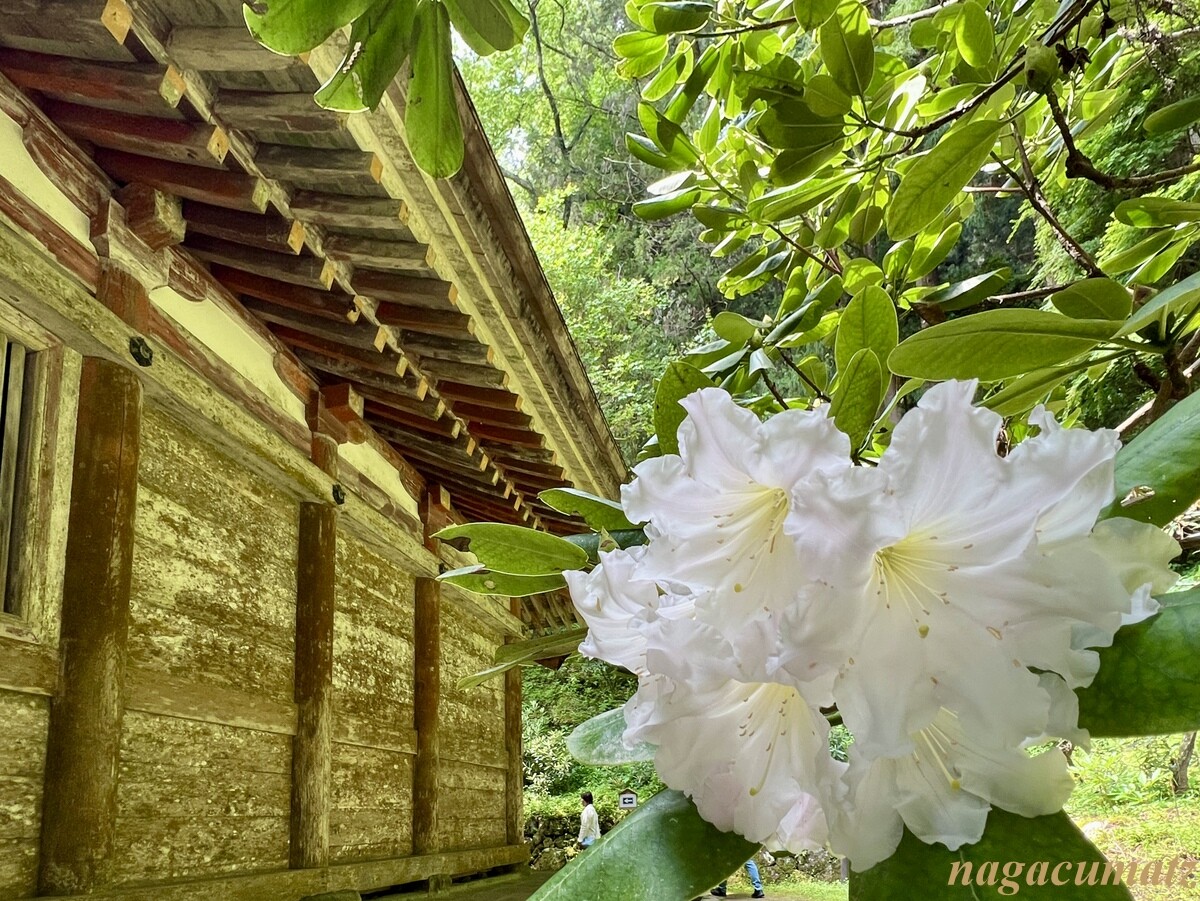 右は国宝の金堂(平安時代初期)、奥は重要文化財の弥勒堂(鎌倉時代)