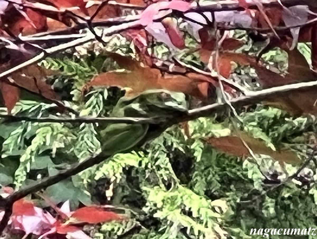 バン字池には、天然記念物で絶滅危惧種のモリアオガエルが来ており、木の枝でやすんでいた。