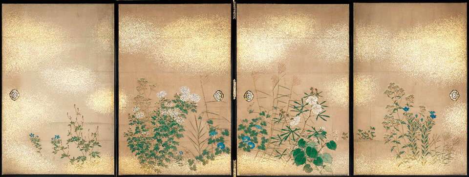 御常御殿障壁画、中島来章筆《四季草花図》