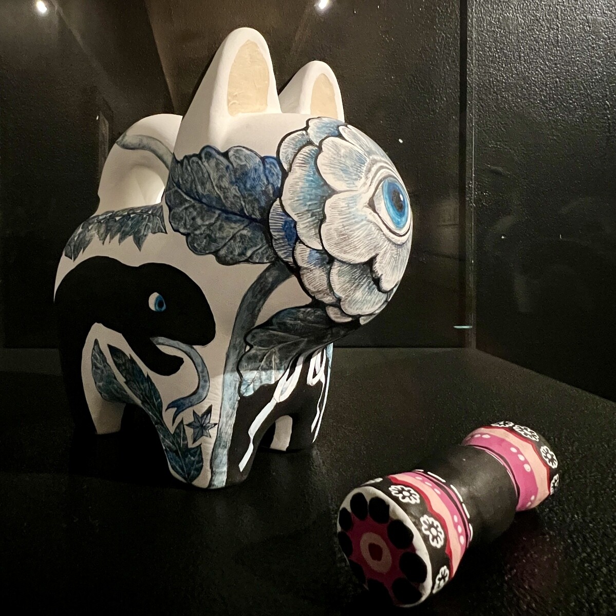 幻想的な動植物や少女のモチーフを細密な筆致で描いておられる。