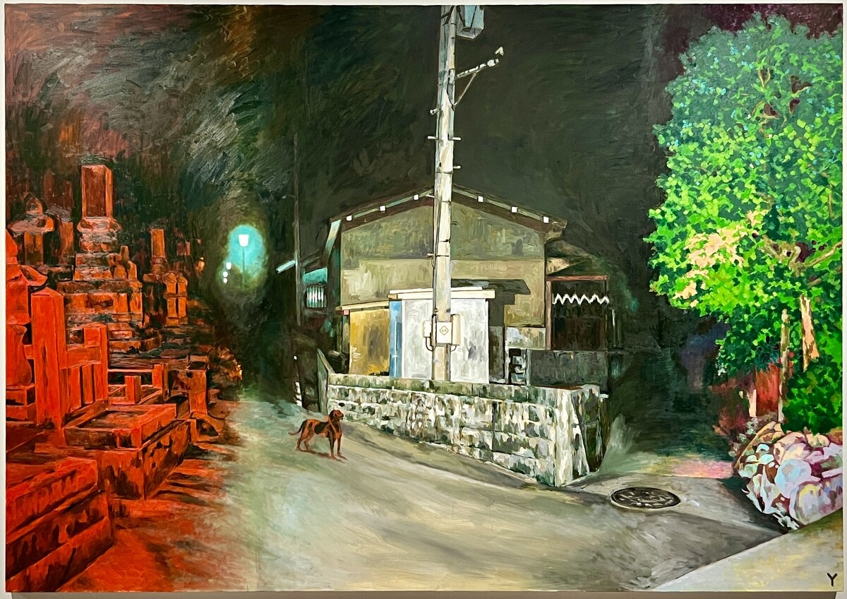 《暗夜光路 赤い闇》2001 Y字路シリーズの初期のもの。2021年に開催された東京都現代美術館での横尾忠則氏の展覧会で見た作品。