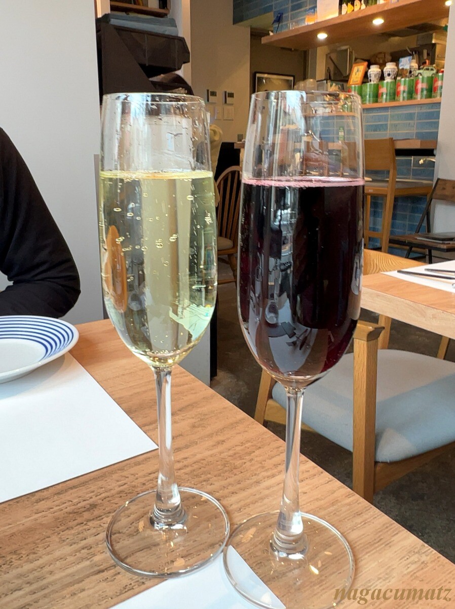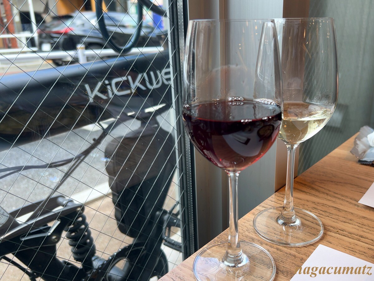 白や赤のグラス 各1200円(白は既に飲みかけてしまっているが💦)
