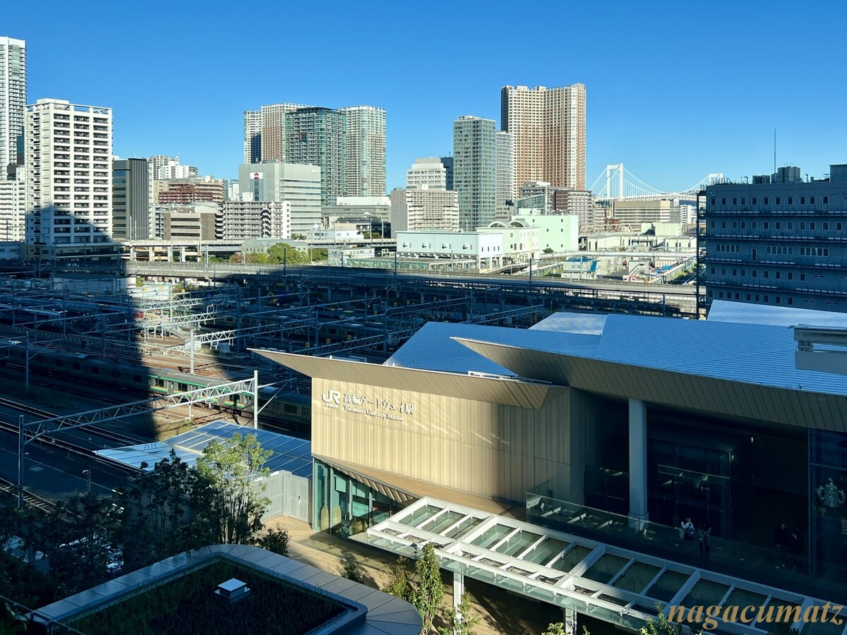 高輪ゲートシティ界隈のビル群が見えて来たが、品川駅前はまるで工事現場。