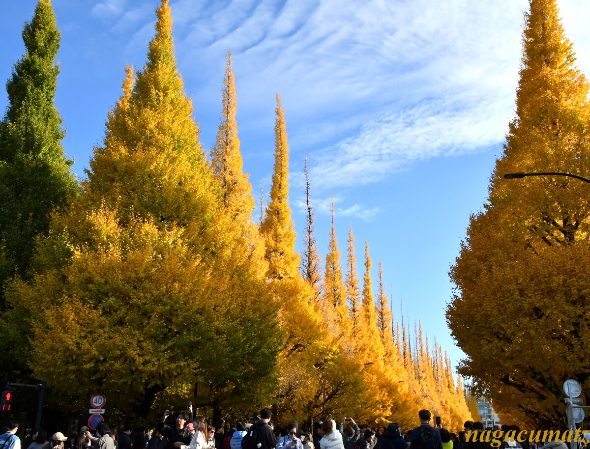 外苑前のイチョウ並木には、今年は急遽この2日後に友人とも行くことになった。(11月26日撮影)
