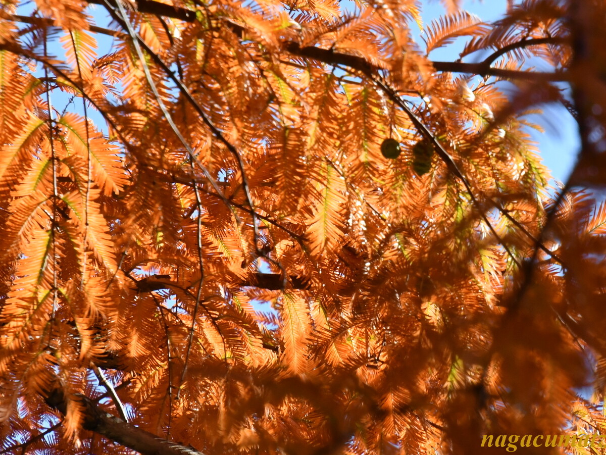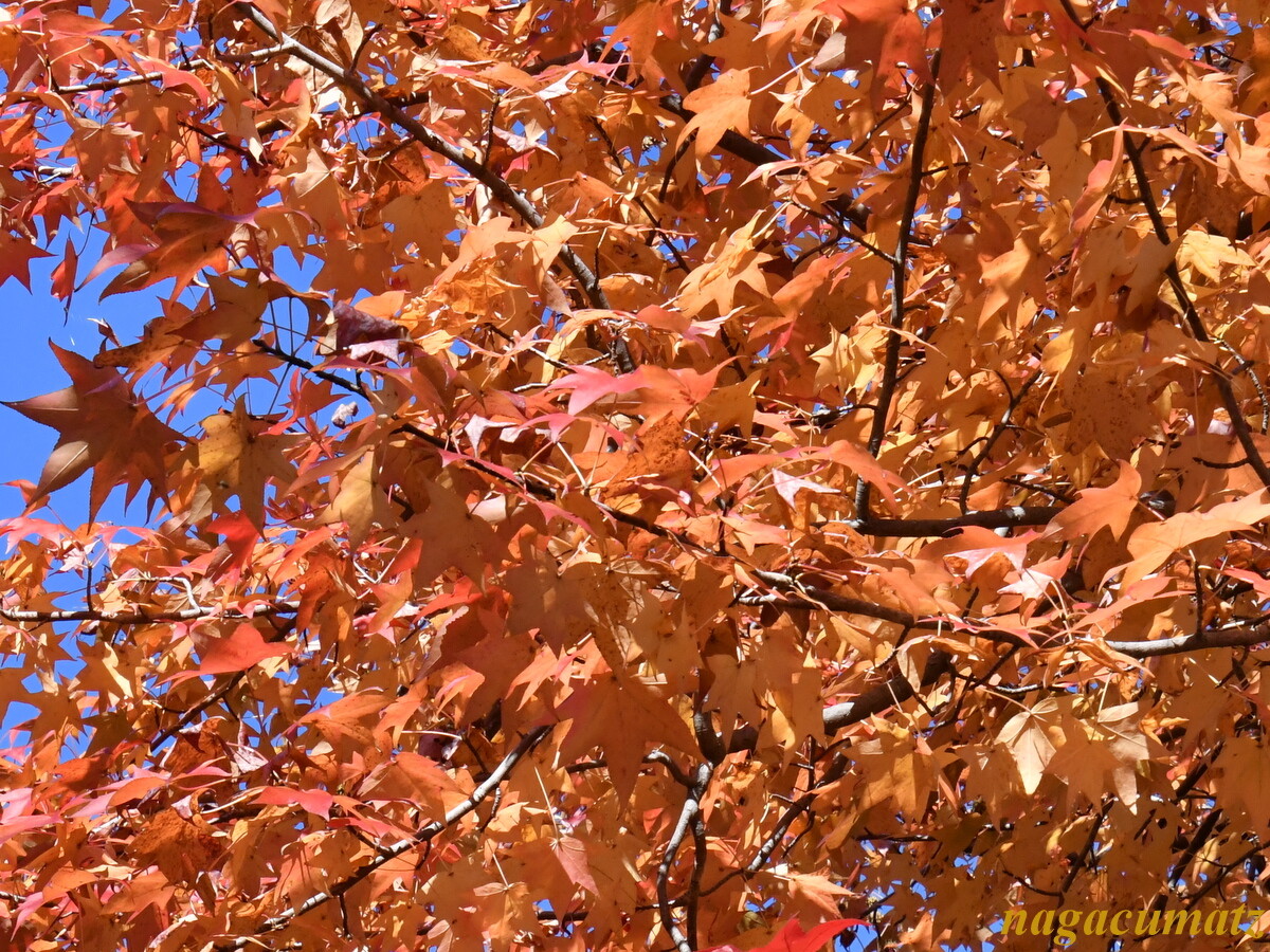 メタセコイアやモミジバフウ(=アメリカフウ)などの紅葉を見に、多摩市方面へ。