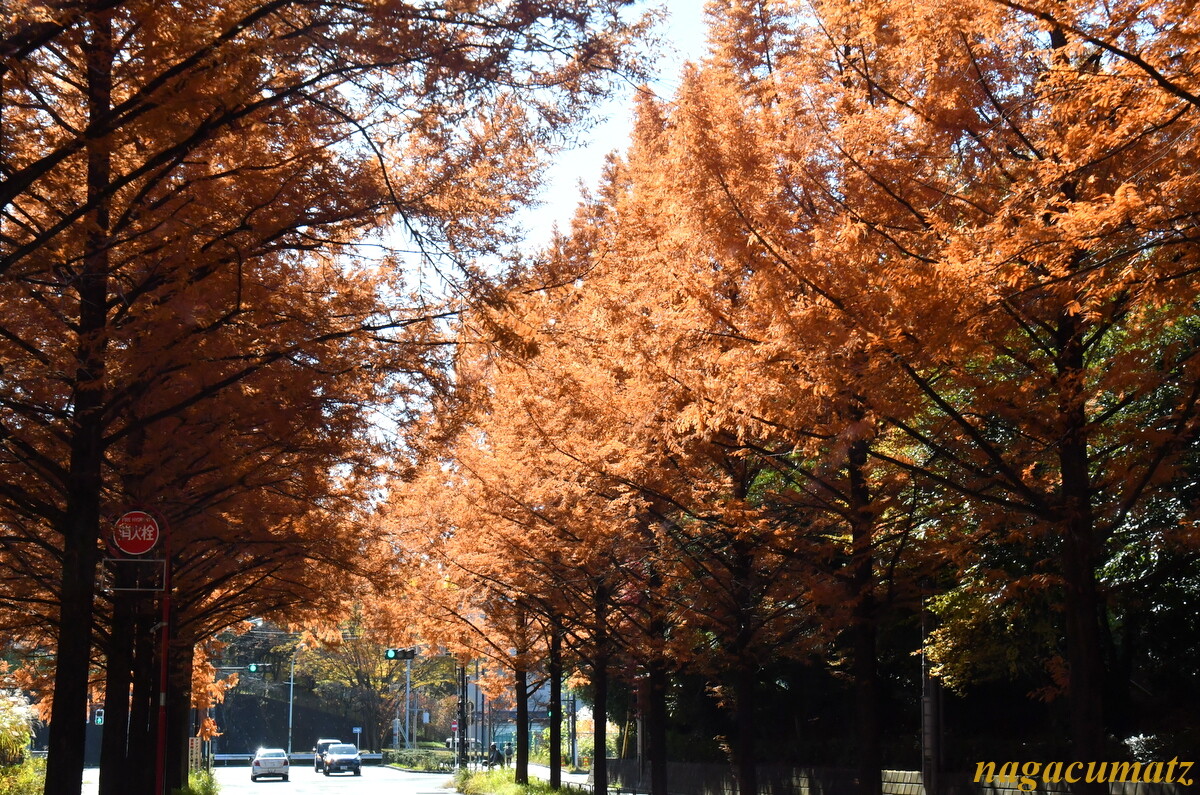 多摩市南野のメタセコイア通り 600メートル程が続く。
