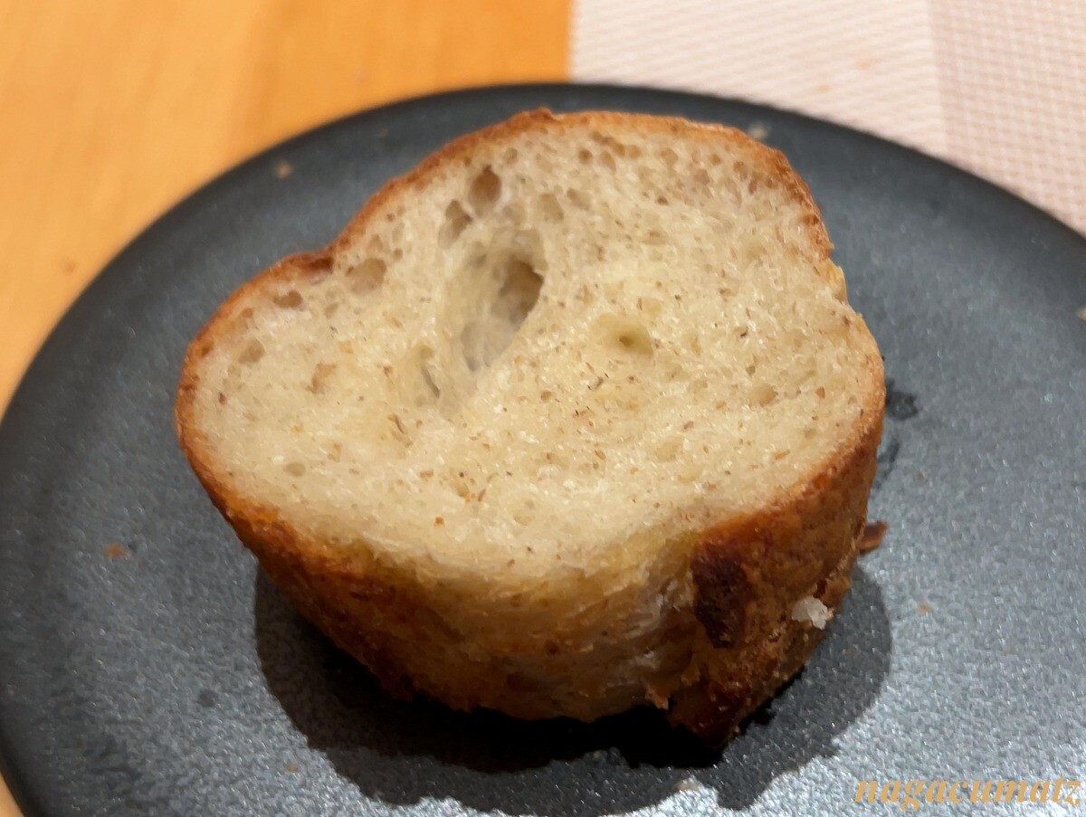 自家製のパンは、外側はカリッと中はもっちりしているが、黒糖が入っているそうで美味。毎朝焼いておられるとのこと。