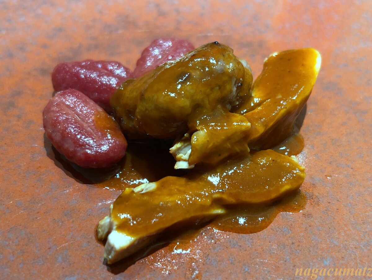 仔羊のバラ肉と、ハンバーグの2種類。ビーツのニョッキが付く。しっかり羊の香りがして2種類のお味が楽しめる。