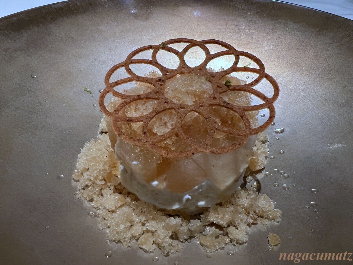 新潟の和梨には、生姜、マスカルポーネ、柚子が使われ、和紅茶のシャーベットが散らしてあり、とてもさっぱりすっきり。