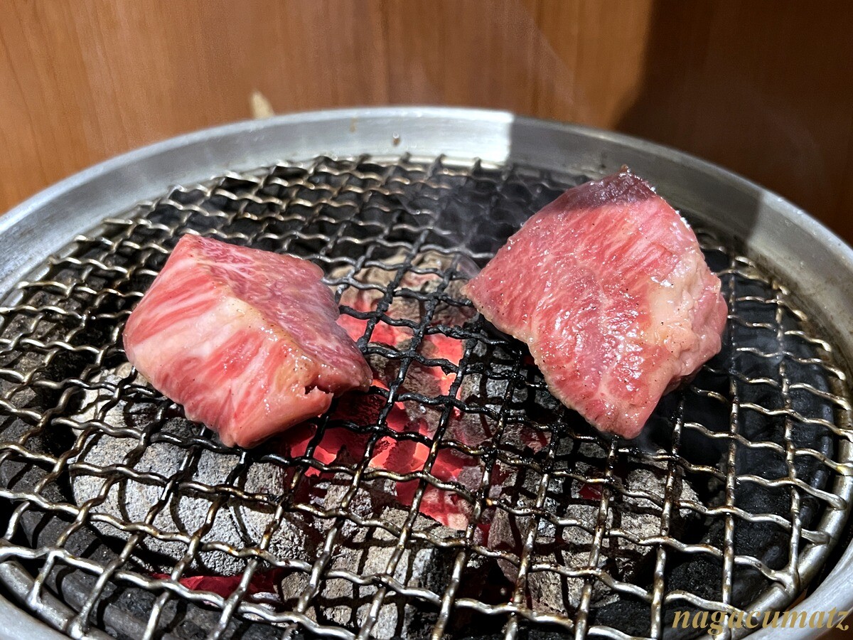 特上ハラミ 2切 2640円 ひとり1切までと決まっている。カットが分厚く大きいので焼き方が難しい為、担当の方が焼いてくださった。