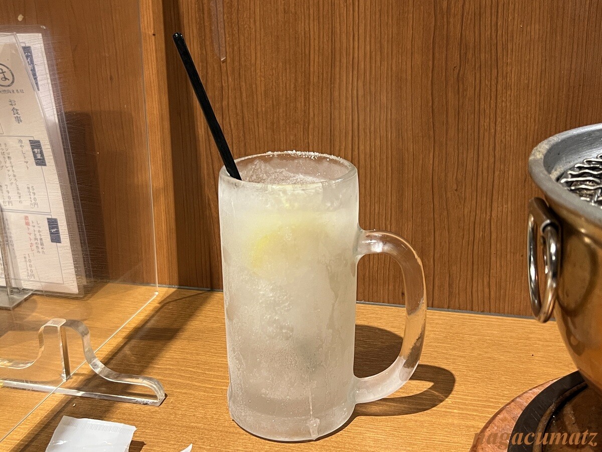 特製レモンサワー 限定30杯 715円は、まるでソルティードッグのように塩が周りに付いていて、ダイキリのようなフローズンになっている。(画像にはないが)特製レモンサワー甘め 715円を。特製レモンサワー甘めが気に入った。