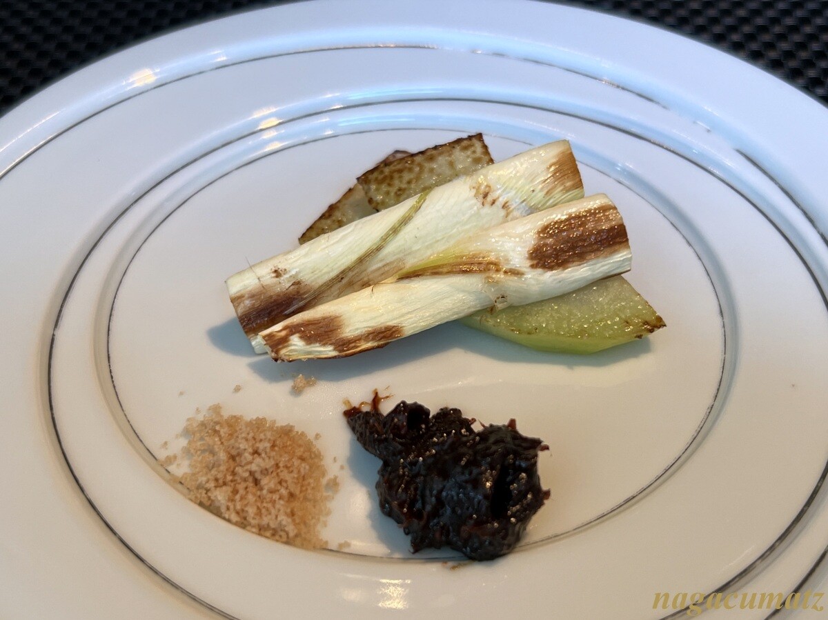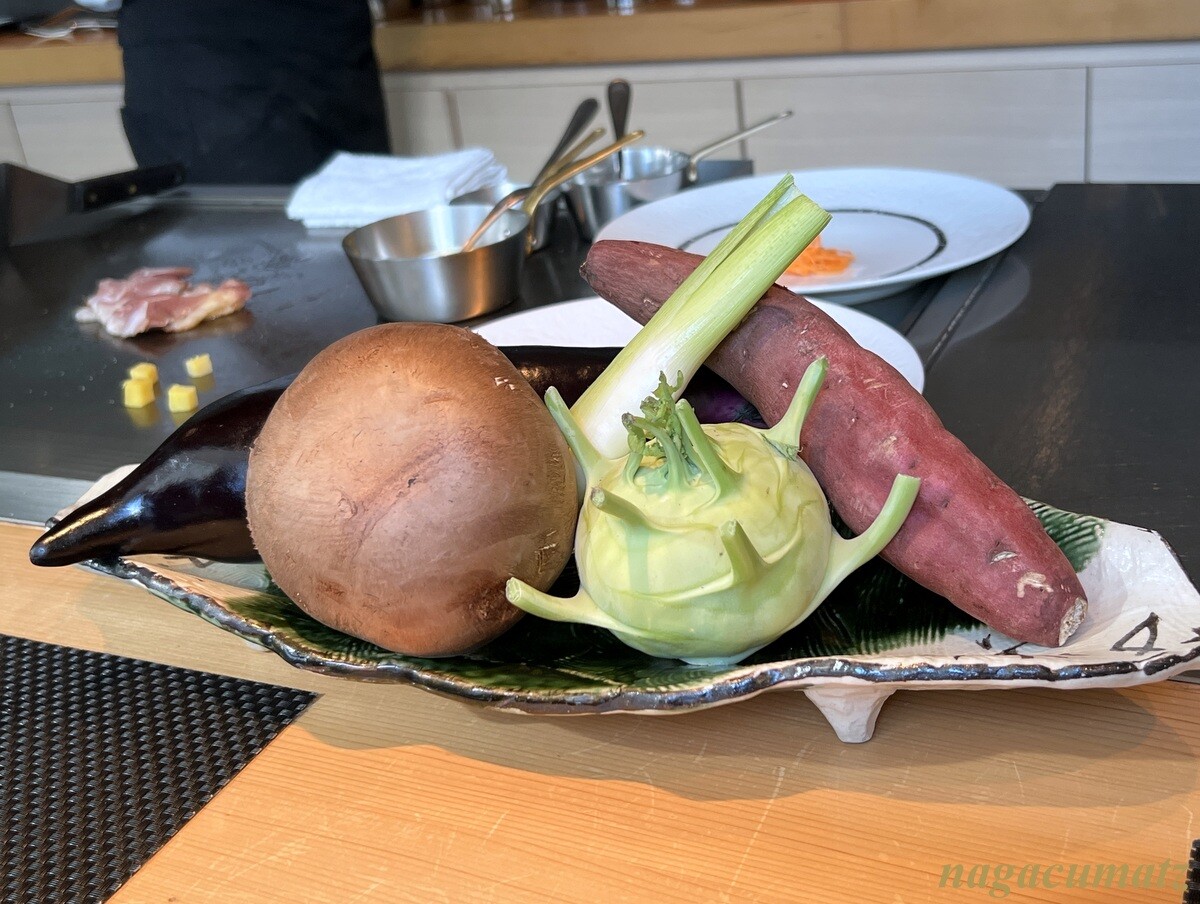 これらの野菜から好みのものを一種類選べるので、友人はマコモダケ、私はコーラビを。