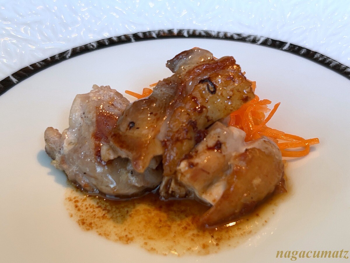 軍鶏のポン酢バター醤油 弾力が良い。