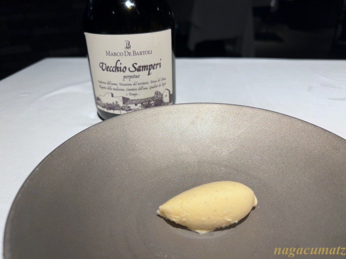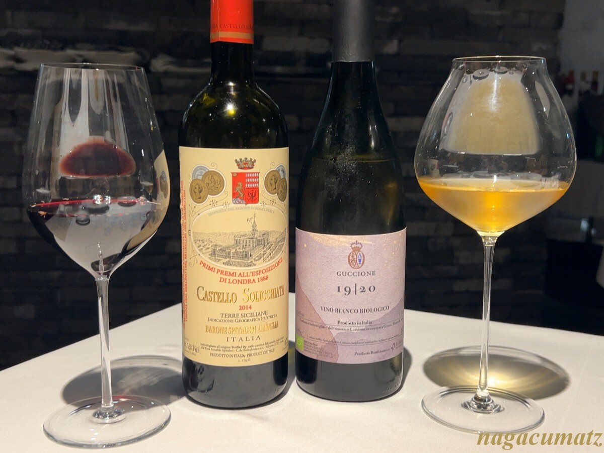 オレンジワインのグラス 2000円、赤のグラス 2500円 赤もとても美味しいのだが、このオレンジワインは樽香もついていて気に入った。