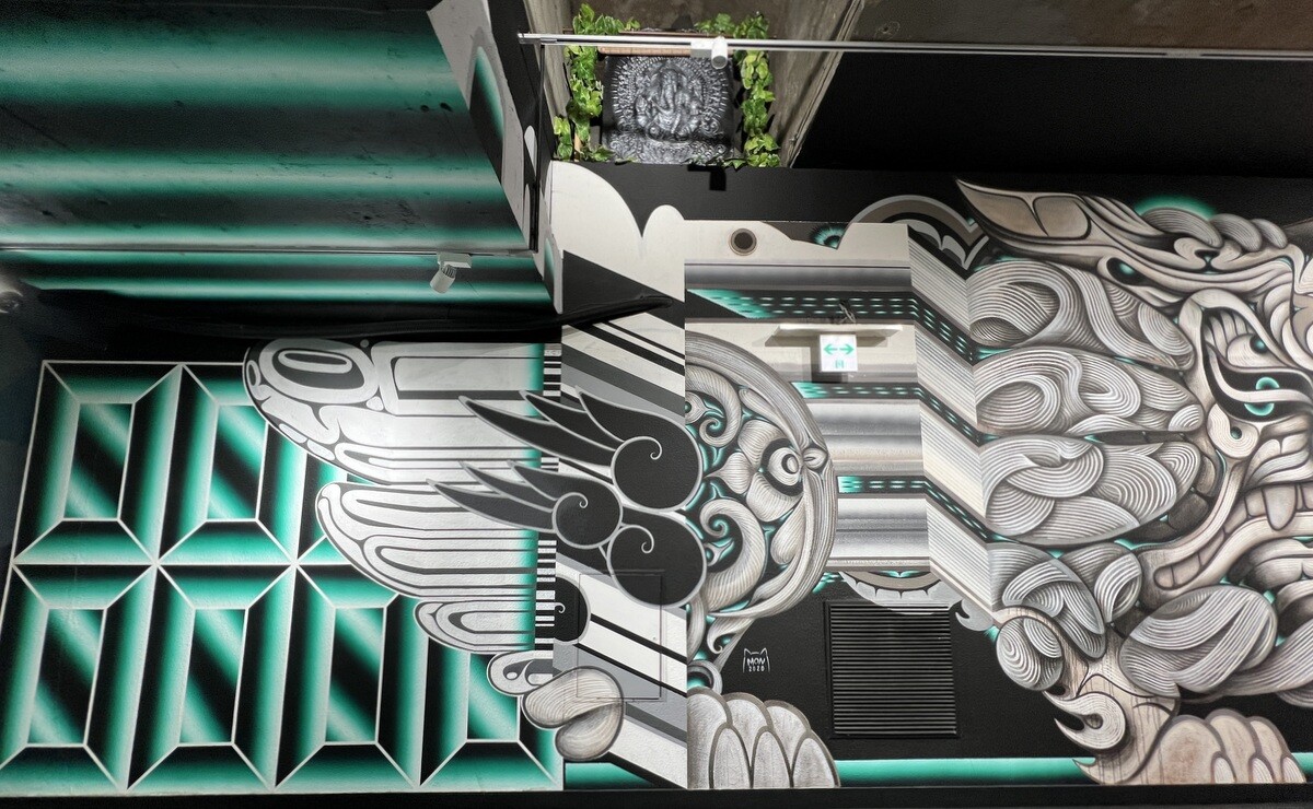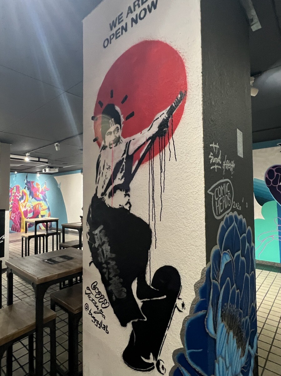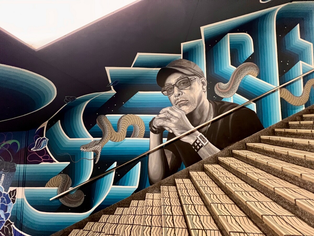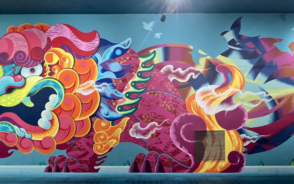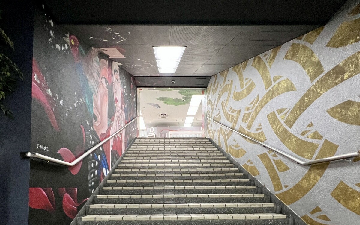 1970年開催の大阪万博に合わせて建造された船場センタービルは、東西1,000mにわたる大型商業施設。2020年に、開館50周年記念として、船場センタービル3・4号 館地下2階連絡通路内が「船場アートミューラルパーク」となった。総勢24名のアーティストが参加していて見応えがあり、屋外のミューラルアートと異なり屋内なので、色が鮮やか。