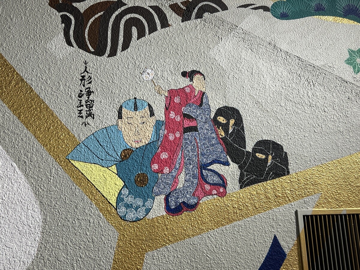 ちょうど横の席で食事をされている方がいらしたので、正面が描かれた角度は撮れず💧