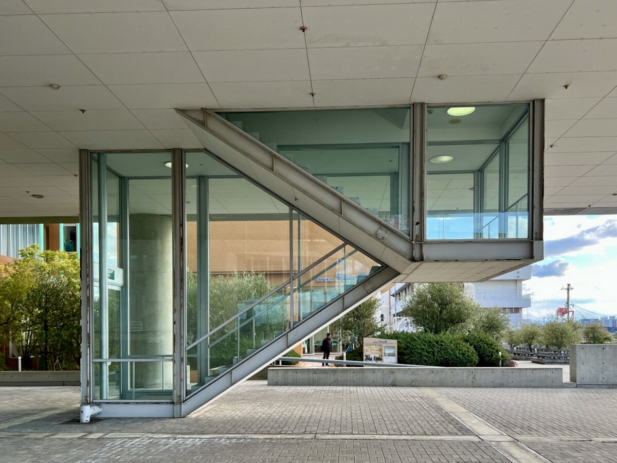 サントリー創業90周年を記念し、「きれいな夕日」を眺められる美術館をコンセプトに、サントリーの2代目社長・佐治敬三氏が美術館の設計を安藤氏に依頼。「サントリーミュージアム」は2010年に閉館、施設は大阪市に寄付され、「大阪文化館・天保山」に施設名称が変更。2013年から2023年3月までオリックスグループが施設を運営。2023年4月以降は株式会社日中文化経済事業団が運営しているとのこと。内部のガラスの吹き抜けエリアは開いていなかった💧