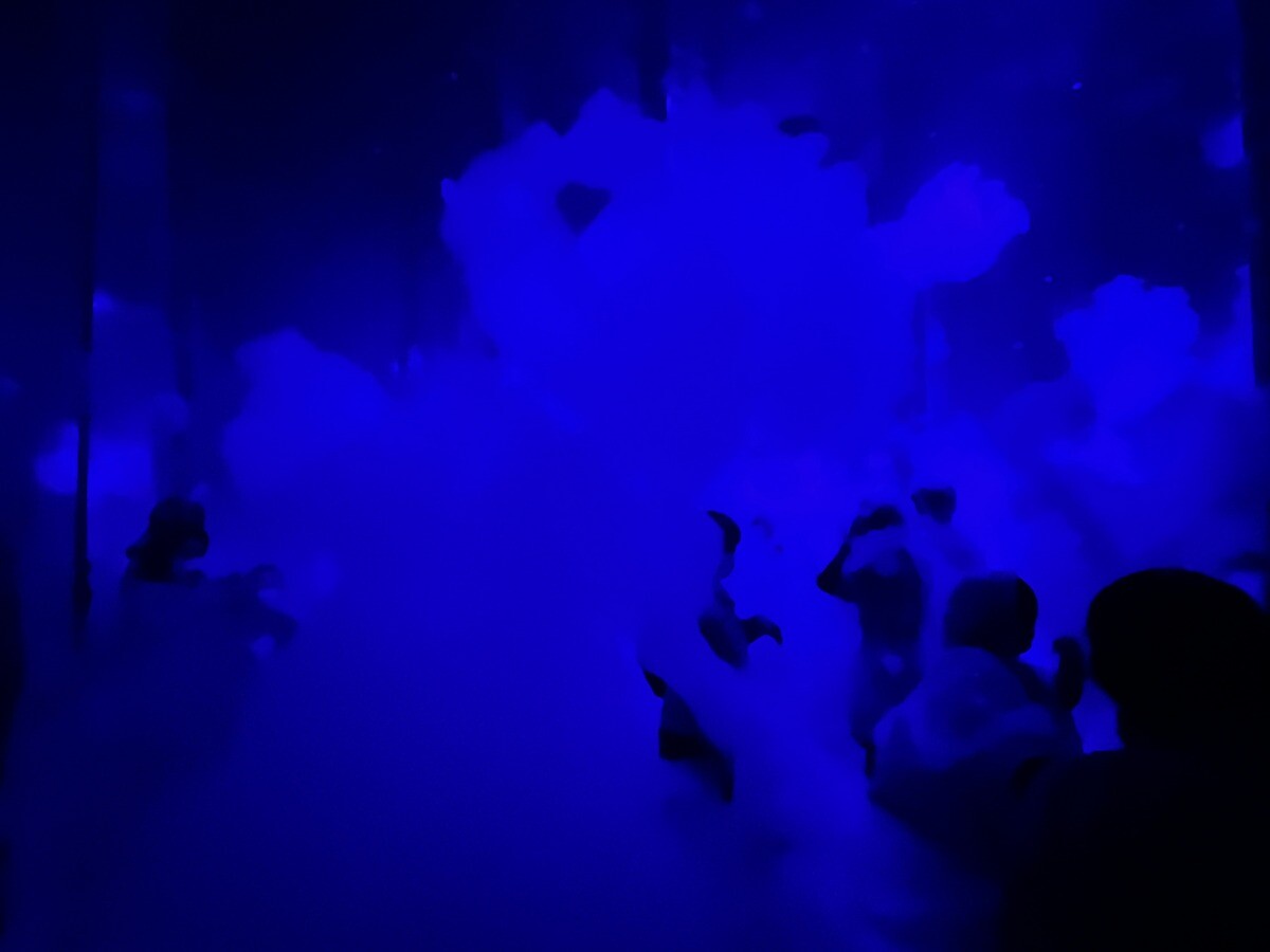 他のチームラボの施設で見た作品も多数あるが、新作もいくつもあって楽しめる。《質量も形もない彫刻 Massless Amorphous Sculpture》