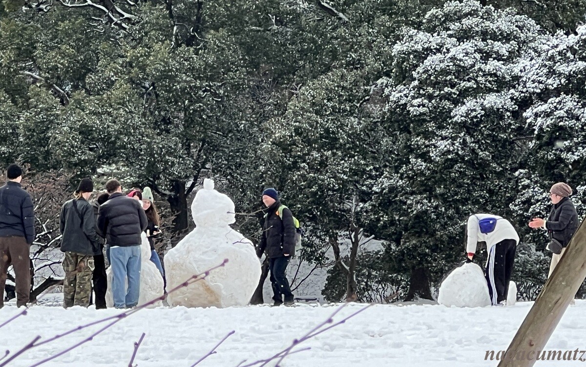 インバウンドの人達があちこちで雪だるまを作っていた。