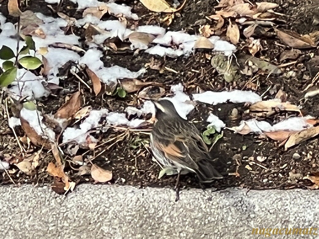 雪が止んで来ると、野鳥が活発に飛んでいた。メジロ、セキレイ、ツグミ。