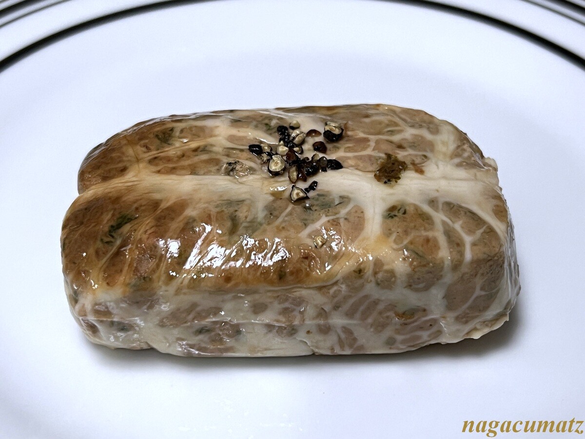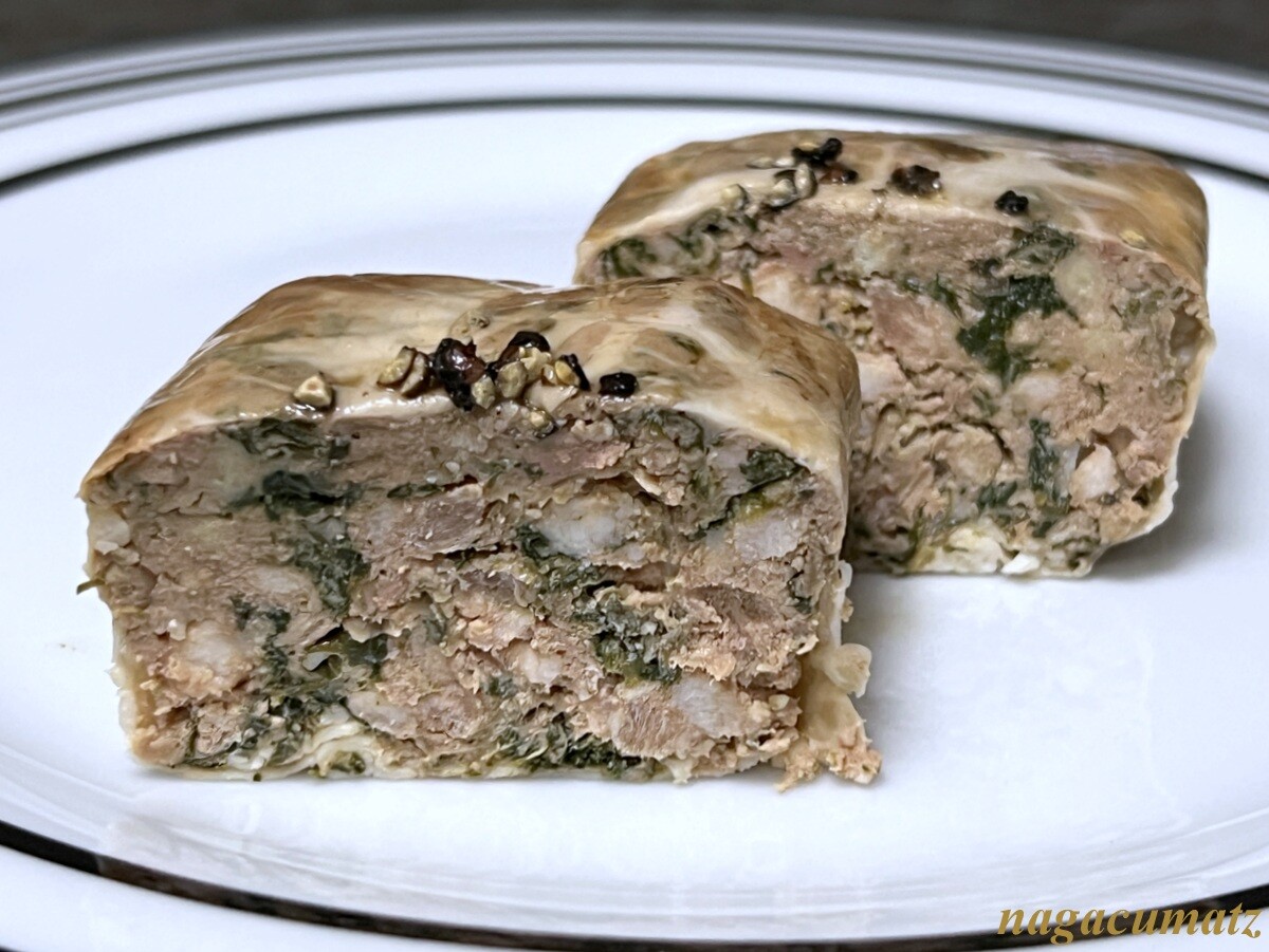 ハーブが入ったレバーのパテで、網脂で包まれている。