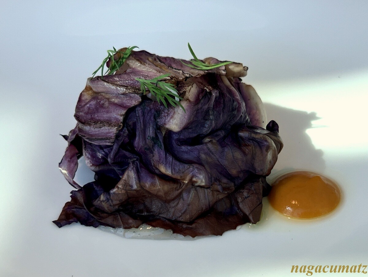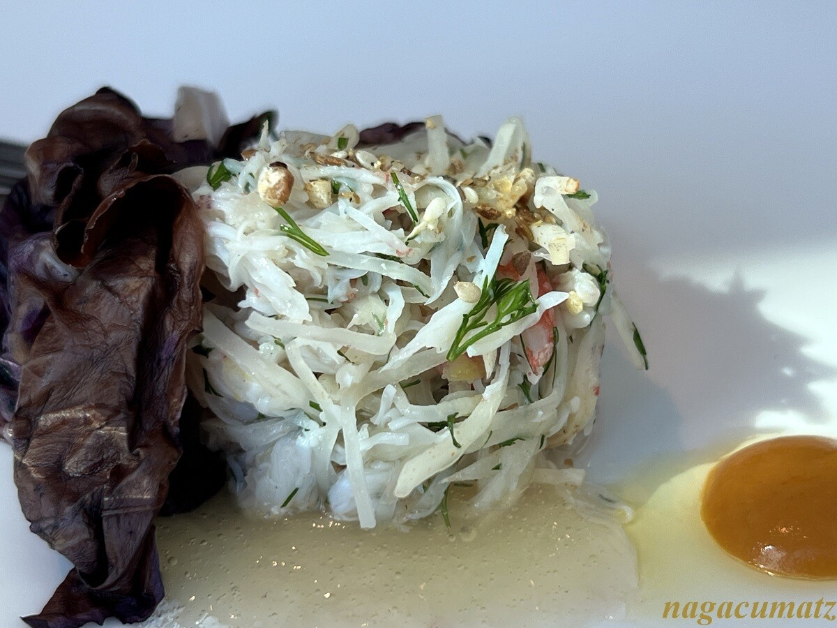 トレビスを纏ったズワイガニと根セロリのサラダ 金時人参のアクセント