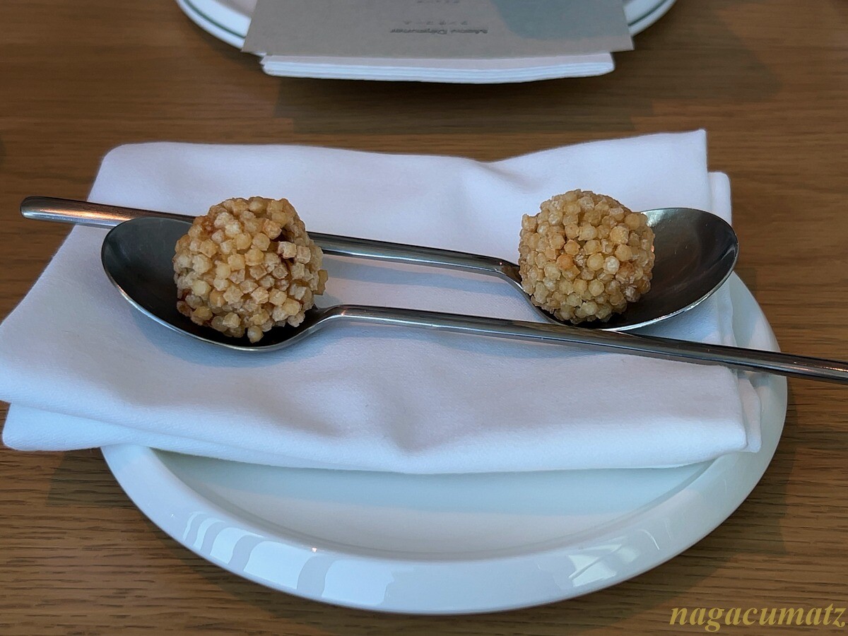 2月限定のカクテルのショコラヴィオレ1800円(青森のカシスに、トンカ豆を使ったキールロワイヤル)と、ととのい生姜サワー 1600円 と共に、6600円のランチを。
