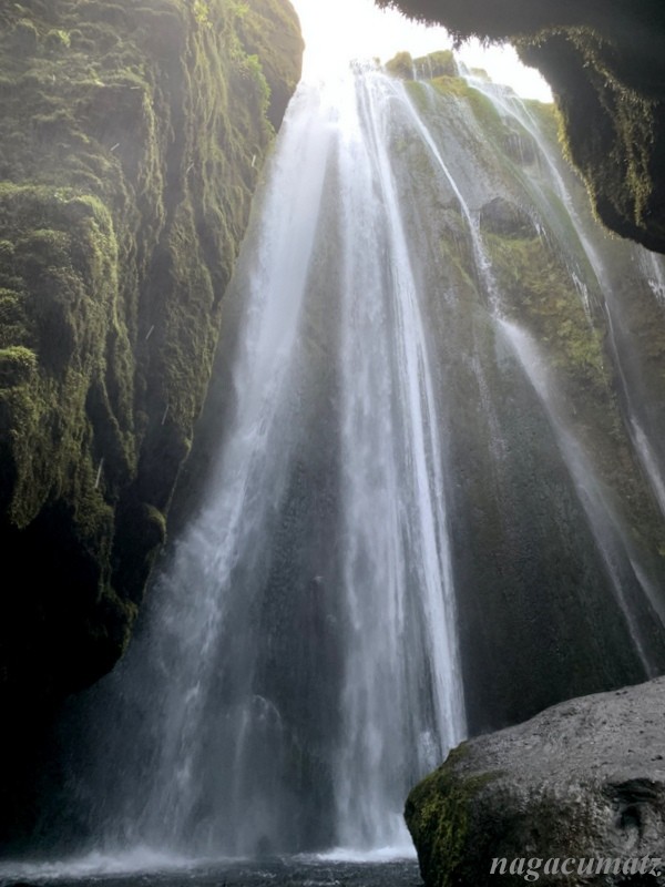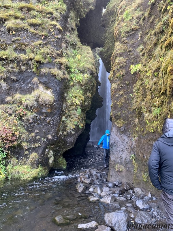 セリャランズフォスの側にある。洞窟の入り口のような岩と岩との狭い間を入って行く。