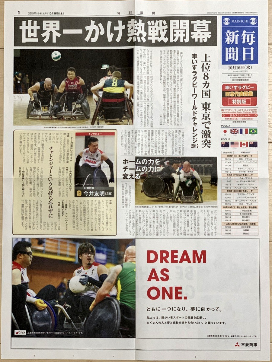 ワールドカップラグビーの日本チームが南アに敗れた同日に、奇しくも「車いすラグビー ワールドチャレンジ2019」の日本 vs イギリスの3位決定戦を見ることに。