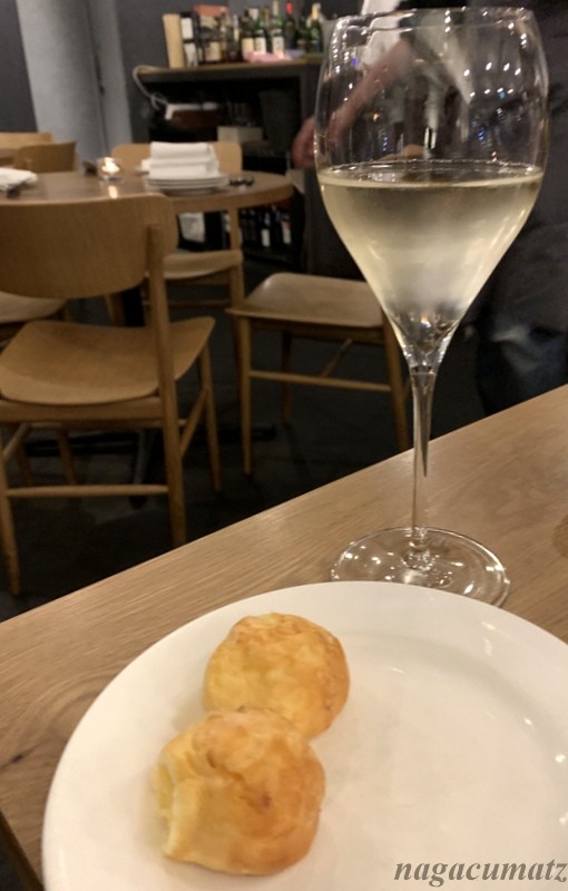 スパークリングワイン、突き出しはポンテケージョ。