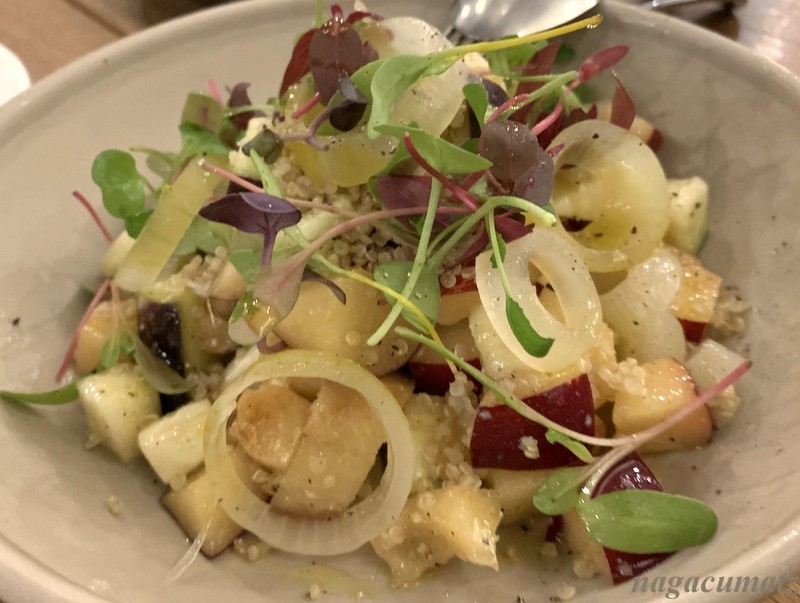 プラム、水ナス、チーズ、キヌアのサラダ