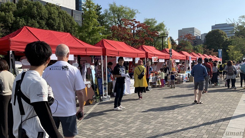 スクリーン前では色々なイベントが行われていて、そのうちのひとつ、KAGAJO7なるアイドルグループの公演も。全然知らなかったのだが、ラグビーW杯を盛り上げるべく、KAGAJO7と言うアイドルグループが2年半ぐらい前から活動を始めていたのだそう。面白かったのは、ラグビーのルールを伝える歌まであること。そして最前列には、KAGAJO7推しの男性ファンが! 初めて男性ファンがアイドルを声援する姿をテレビ以外で見た経験にもなった。