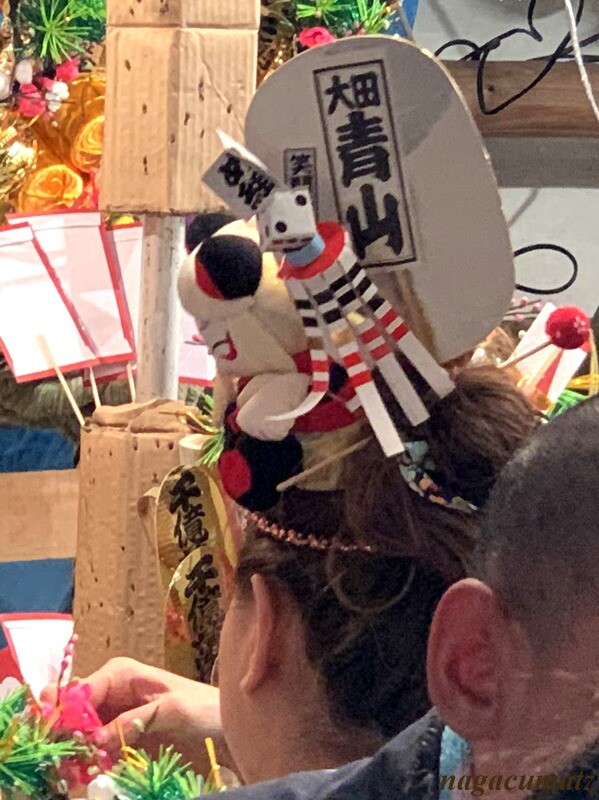 熊手だけでなく、お店のお姉さんの頭飾りも盛り盛り。