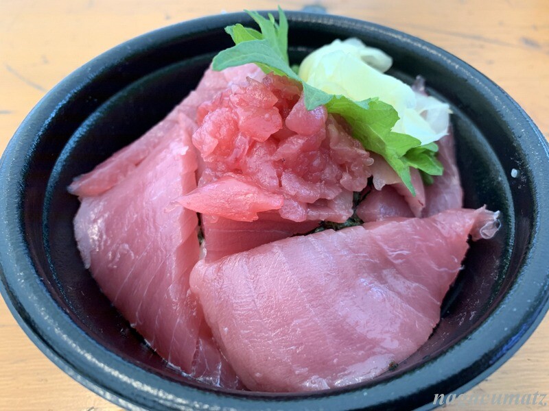 解体したばかりのマグロの丼ぶりを。小サイズ1000円。