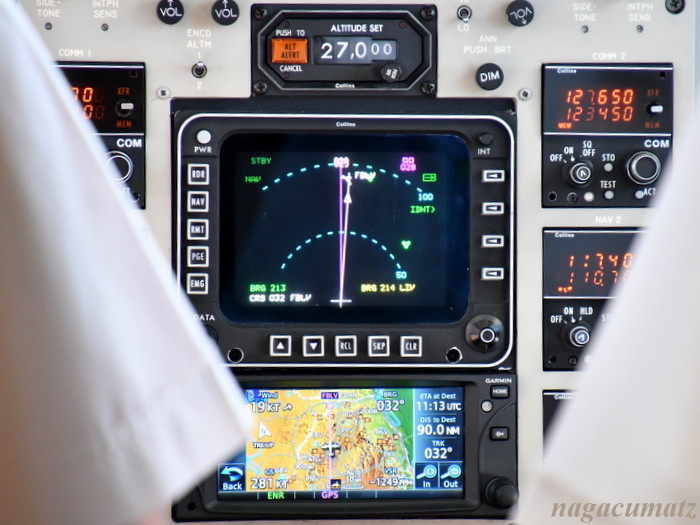 驚いたことに、乗客は我々2人のみなのだが、8~9名乗りの Pilatus PC12 なる機種で、内部は総革張り! 27000フィートまで昇っていた。