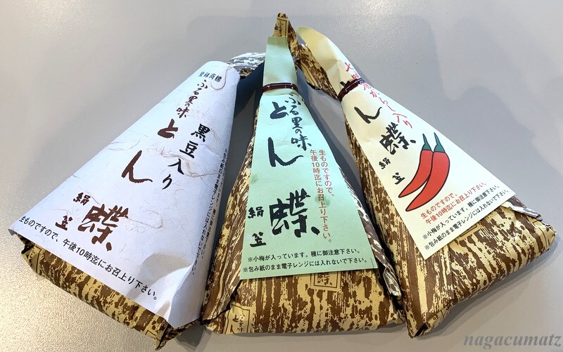 2020年01月20日 【大阪】 絹笠 <おこわ> (11月'19) 慶応3年創業、戦時統制の廃業を経て昭和23年に復活。とん蝶なるおにぎり?を。左から:黒豆入りとん蝶364円、とん蝶324円、七味入りとん蝶 324円 もち米の白蒸しに大豆、塩昆布を合わせて小梅が乗っている。黒豆入りは美味しい。普通のとん蝶よりも中に七味入りの方が好きかも。一個が180グラムなので一膳程度と言われたが、もち米と言うこともあり、結構なボリューム。大阪市北区梅田1-13-13阪神百貨店 B1にほんブログ村にほんブログ村 「〇国内(関東以外)グルメ」カテゴリの最新記事 < 前の記事次の記事 > コメント コメントフォーム 名前 コメント 記事の評価 リセット リセット 顔 星 情報を記憶 コメントを投稿する