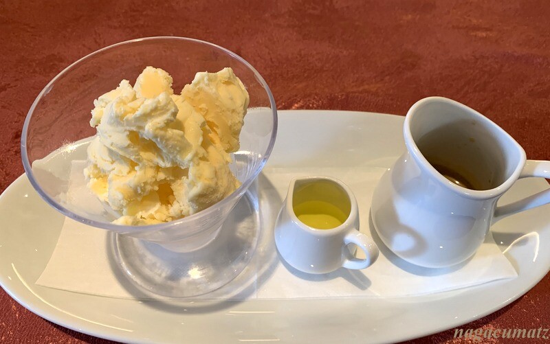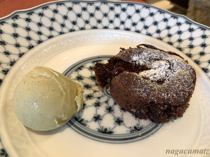 デザートは選択で、私はマスカルポーネのアイスを、友人達はフォンダンショコラとピスタチオのアイスを。マスカルポーネのアイスには、コーヒーとデンマークなど北欧で飲まれるアニス風味のアクアヴィットのような物がつく。イメージとしてはアフォガートだった。