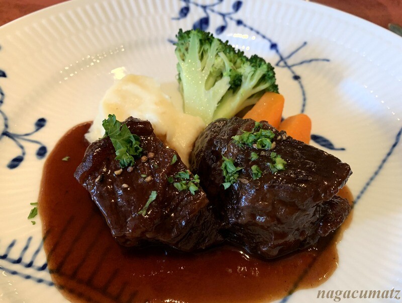 メインは和牛か鮮魚からの選択で、和牛の赤ワイン煮込みを。シチューのような煮込みで美味しい。