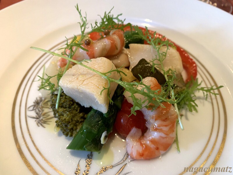 アスパラ、ズッキーニ、ブロッコリー、トマト、パプリカなど色々なお野菜に。帆立が美味しい。