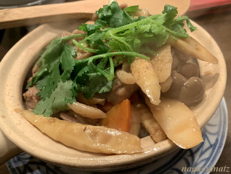 ベトナム土鍋御飯 1200円 鶏肉や姫茸やキノコなどが入り、おこげなども美味しい。