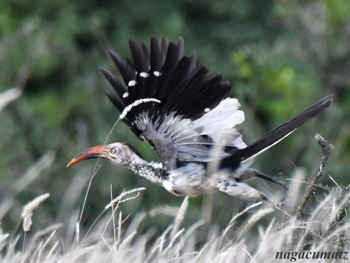 左から:ミナミアカハシコサイチョウ Southern Red-billed Hornbill, Tockus rufirostris